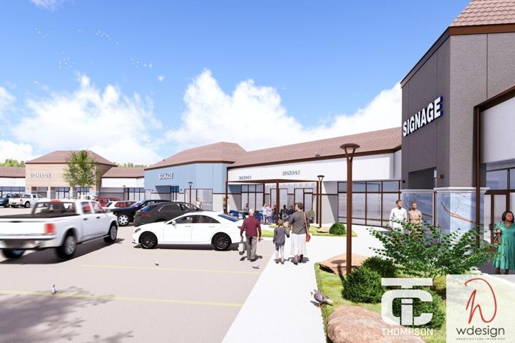 The Plaza Shopping Center is being remodeled with a new facade that will feature wood-look panels and tile accents.