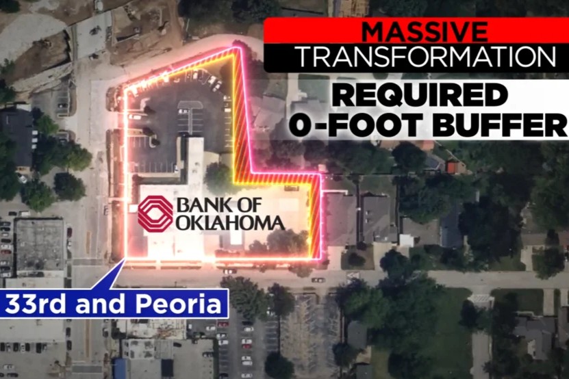 The Tulsa Board of Adjustment unanimously approved a zoning variance for the site at 33rd and Peoria, the home of a Bank of Oklahoma branch currently slated for a massive transformation.