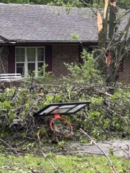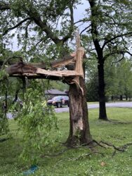 In Muskogee, nearly 500 people are currently without power after a storm on Tuesday night. Near the area of West 43rd Street and Cherokee Drive, there were several sites of damage. One included a house that was struck by a tree that had become uprooted due to storms.