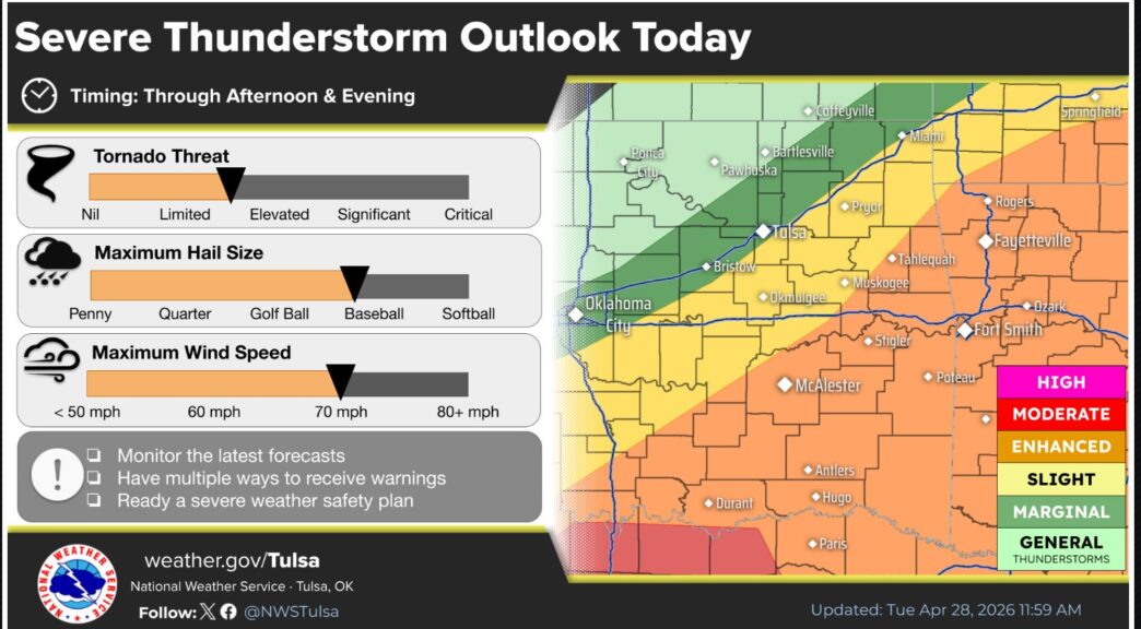 We’re in constant communication with the FOX23 and KRMG Severe Weather Team and the National Weather Service … and will continue to update you on our threat of severe weather.